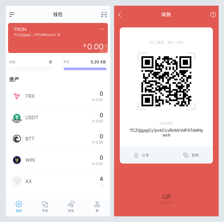 ImToken的基本功能就是病毒式的数字钱包——让你可以存储,比特币、以太坊等多种主流加密货币,轻松管理你的资产。